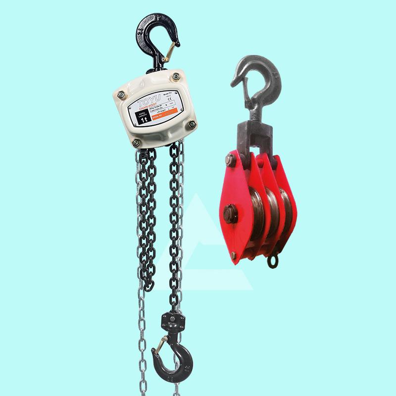 2.起重滑車目前來看是可以分成單輪起重滑車、雙輪起重滑車、三輪起重滑車以及多輪起重滑車等,在使用的時(shí)候可以配合索具使用,操作比較簡(jiǎn)單。環(huán)鏈?zhǔn)掷J的起重鏈條數(shù)是根據(jù)手拉葫蘆規(guī)格型號(hào)而有所不同,手動(dòng)葫蘆的起重鏈條數(shù)從1到38不等;