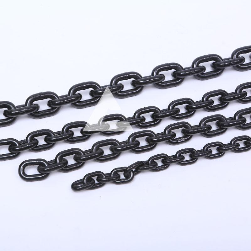 G80級起重鏈條外形美觀,采用高強度錳鋼材質(zhì),具有良好的耐磨性,鏈條經(jīng)過熱高溫處理,具有耐高溫的特性,受力不易變形,方便耐用。在起重鏈條表面進行發(fā)黑、拋光等處理,使得鏈條外觀更加美觀,具有防腐蝕的作用。辰力公司生產(chǎn)各種不同型號的鏈條,質(zhì)量等級達到80級,可以根據(jù)客戶要求進行不同的表面處理。